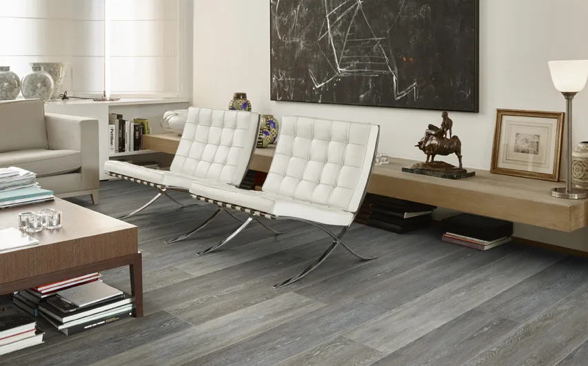 Rijke materialen met een stukje ‘vroeger’. Denk aan visgraat houten vloeren in combinatie met velours gordijnen. Het liefst in donkere kleuren. Zwart of bruin is een goede basis voor je vloer of muur. Een karpet of behang met sierlijke ornamenten past hier perfect bij.