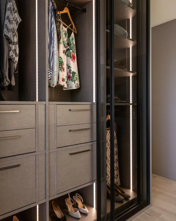 Dit geldt niet alleen voor een kledingkast met schuifdeuren. Bij een kast voor je woonkamer is de vraag waarvoor je hem wilt gebruiken. Zo zijn er prachtige wandkasten, waarin je je tv kunt verbergen of juist laten schitteren en als je voor een ensuite-kast kiest, creëer je een statement-afscheiding tussen twee ruimtes!