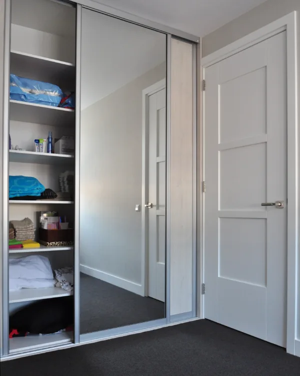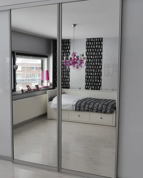 Een schuifdeurkast is ontzettend ideaal om aan al jouw opbergbehoeftes te voldoen, of het nu gaat om kleding, schoenen en tassen. Bij Aanhuis.nl hebben we de luxe optie om je schuifdeurkast nog praktischer te maken, namelijk door er een spiegel aan toe te voegen. Hierdoor krijgt je schuifdeurkast ineens een dubbele functie - een echte win-winsituatie!