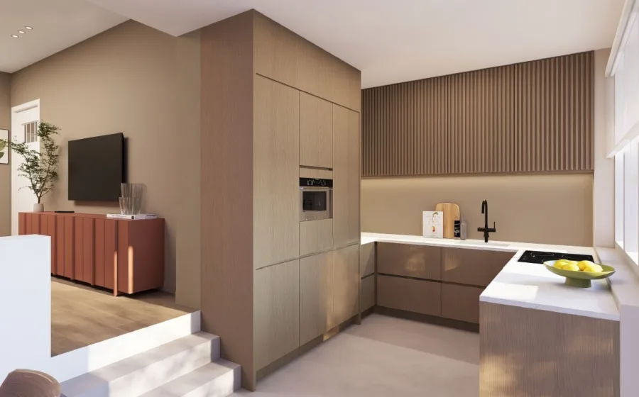 Dankzij de nieuwe aanbouw is er niet alleen extra ruimte ontstaan, maar ook een prachtig splitlevel waar de nieuwe keuken volledig tot zijn recht komt. En bij zo’n droomkeuken hoort natuurlijk een vloer die zowel stijlvol als praktisch is. Dan is een gietvloer dé perfecte keuze!