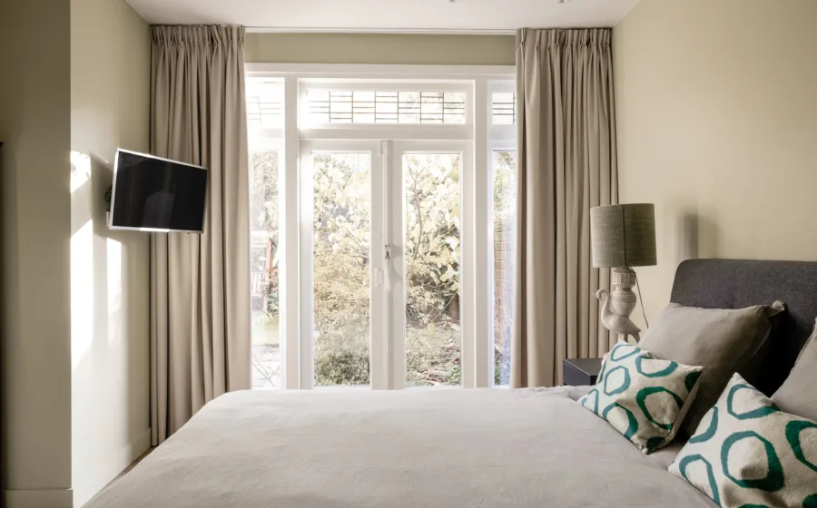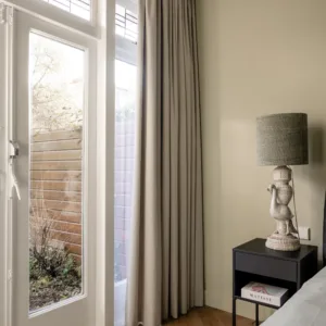 Waar Arnoud en Patricia eerst weinig privacy hadden, is hun slaapkamer nu een oase van rust. Zachte tinten, fijne materialen – pure ontspanning.