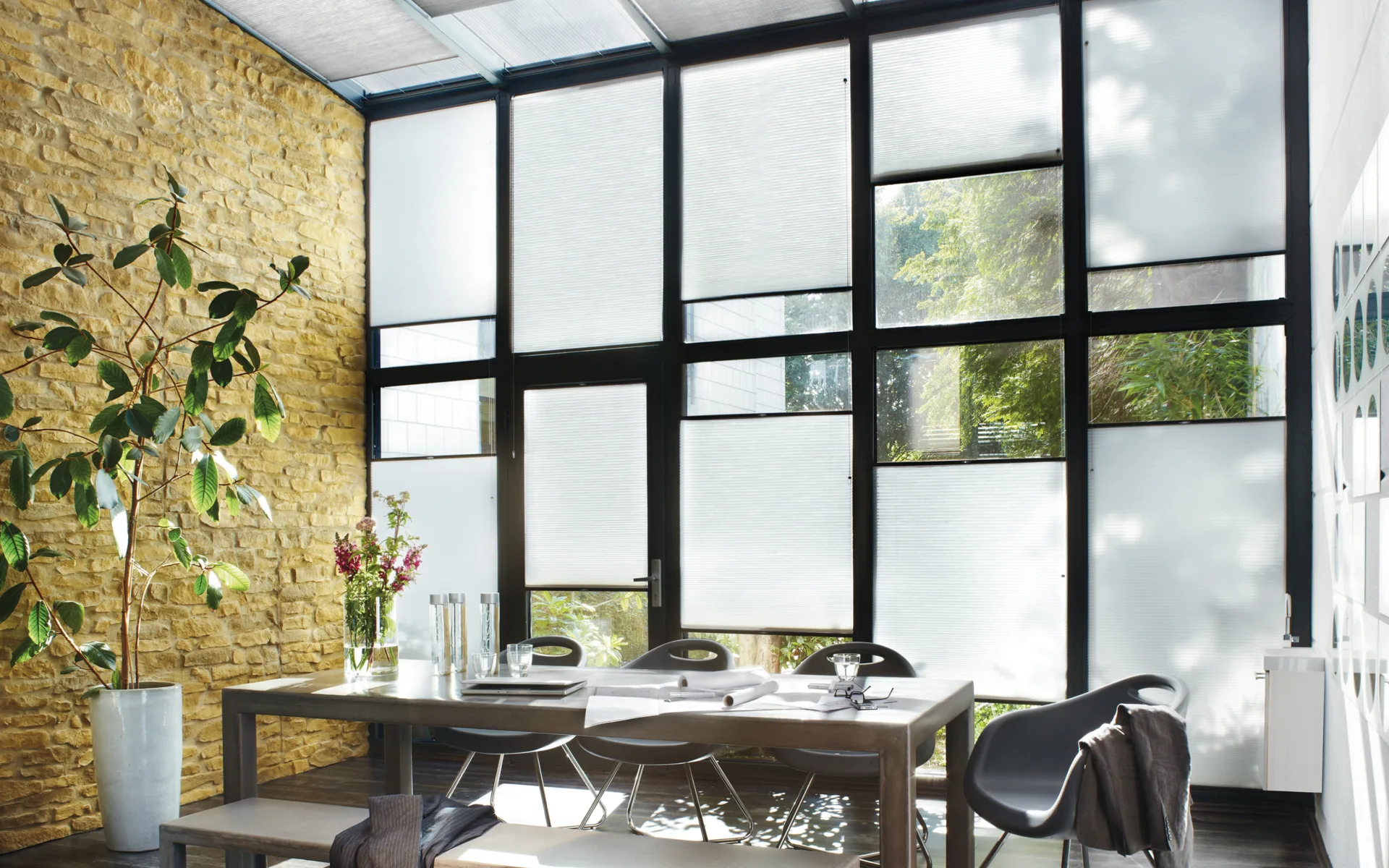 Daarentegen zijn de dupligordijnen opgebouwd uit een honingraatstructuur. Deze structuur heeft isolerende eigenschappen en draagt daardoor bij aan energiebesparing. Bovendien draagt de honingraatstructuur bij aan geluidsdemping!