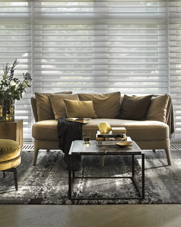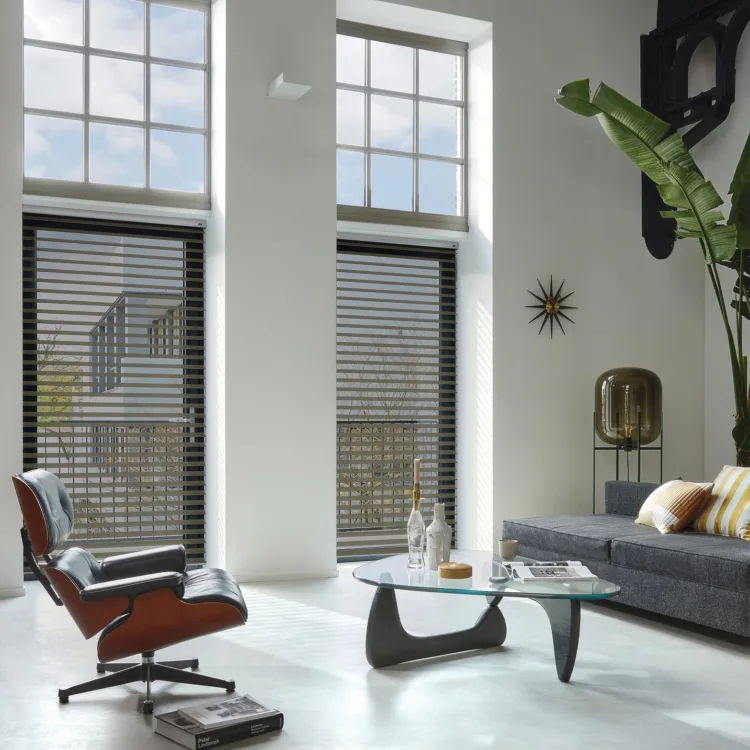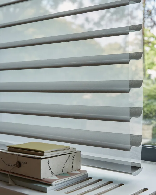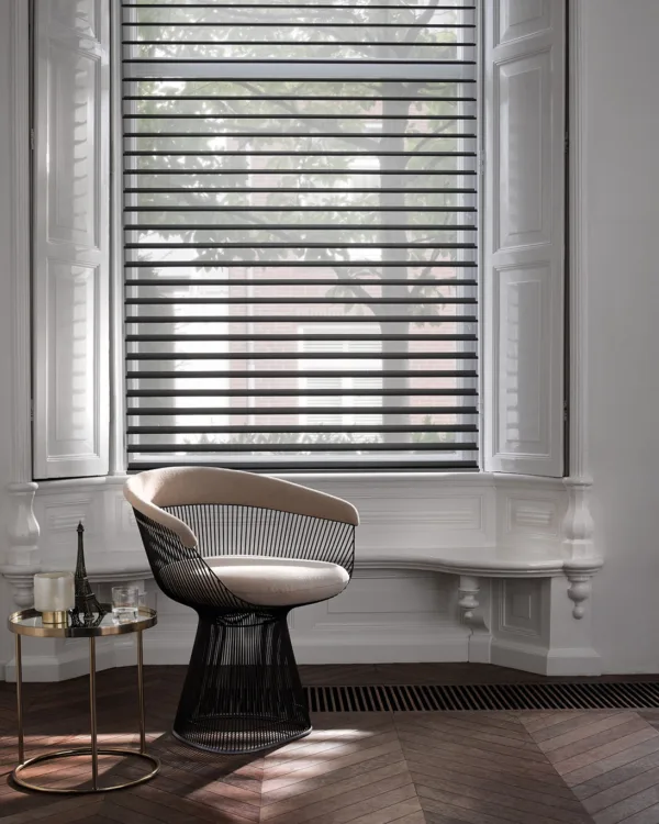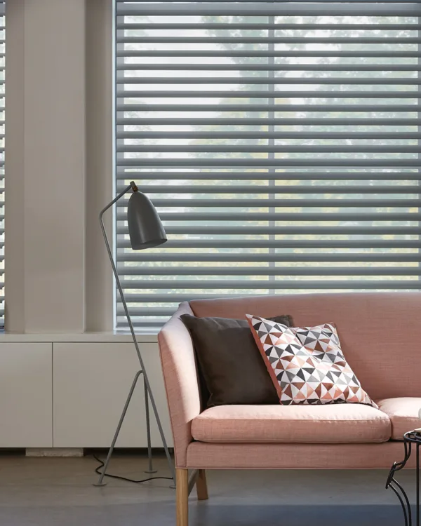 Luxaflex® Silhouette® shades bestaan uit horizontale stoffen lamellen, die tussen twee lagen doorzichtige stof hangen. Net als horizontale lamellen, kunnen de Silhouettes® ook draaien waardoor jezelf de lichtinval in je kamer kan bepalen. Verkrijgbaar in diverse breedtematen en in vele kleuren en stoffen. Geheel voor jou op maat gemaakt.