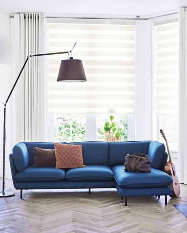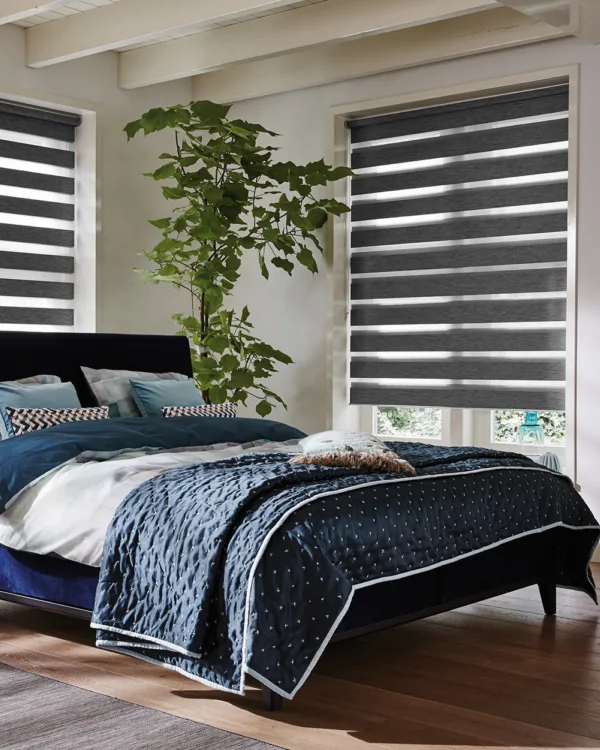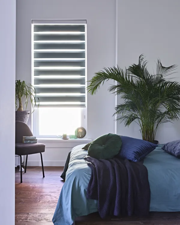 Multishades worden duo rolgordijnen genoemd vanwege hun dubbele laag stof met afwisselend transparante en niet-transparante panelen. Dat maakt ze veelzeidig doordat je zowel de lichtinval als privacy kunt regelen door de lagen over elkaar te bewegen.