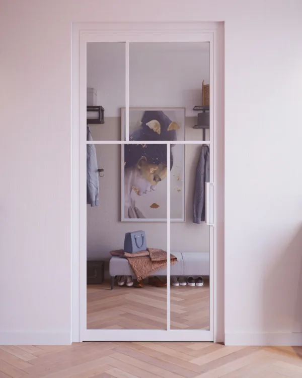 De witte stalen deuren brengen een tijdloos en elegant karakter in het interieur. Ze laten natuurlijk licht binnen, waardoor de kamers helder ogen. Het strakke ontwerp benadrukt de mooie details van het huis. Omdat wit zo'n veelzijdige kleur is, pasten de deuren goed bij allerlei kleuren en stijlen. Ze geven de ruimte een fris en schoon gevoel en zijn zowel praktisch als mooi in het totaalplaatje.