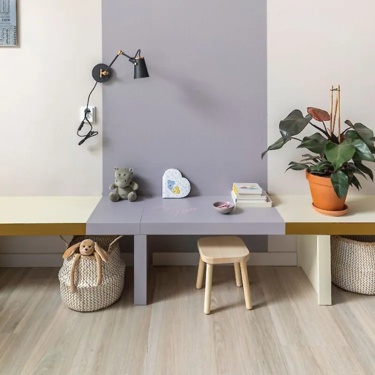 Het is één woord, het ligt op de grond en was foeilelijk? Exact: de VLOER. Fietje heeft, samen met Aanhuis.nl, gekozen voor een lichte, duurzame CorQ vloer. Deze vloer, gemaakt van kurk, is 100% CO2 neutraal geproduceerd. De lichtere houttint in de kleur Eich Polarweiss 200928 zorgt voor een veel frissere look & feel en door de vloer in de breedte te leggen onderbreek je de lange en smalle kamer.