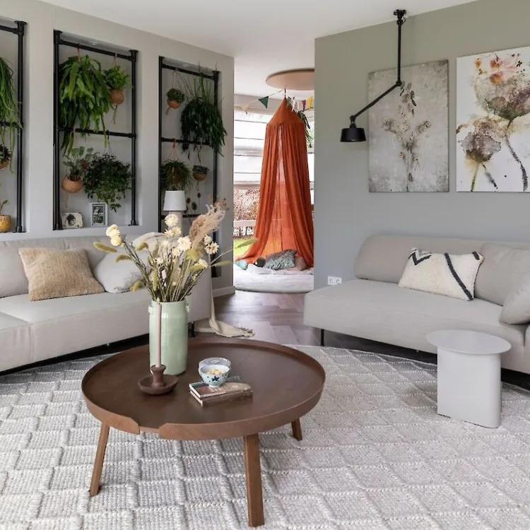 Bekijk onze gordijnenZO! Wat een aflevering hé, Frans wilde gaan voor 'soft design meets spiced botanical'. En dat is wat ons betreft gelukt! En niet alleen wij, maar ook de bewoners zijn echte razend enthousiast. De perfecte mix tussen natuurlijke en beige tinten van Ryani met de terracotta tinten en plantenwand voor Daniël.