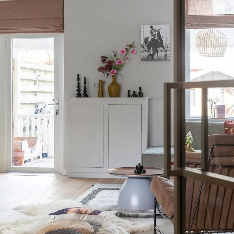 Ook super handig! De vouwgordijnen zijn elektrisch bedienbaar; hiermee bedien je de gordijnen lekker vanaf de bank en bepaal je wanneer ze omhoog of omlaag gaan. Bij Martijn en Marjolein kunnen zij enkel via een afstandsbediening besturen, maar tegenwoordig kan dat ook met een app of via spraakbesturing.
