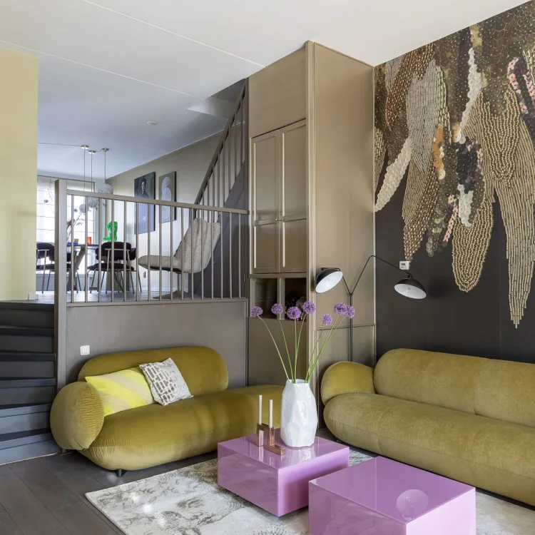En hoe mooi is het dat Marianne hier twee verschillende kleuren kiest. Dit past helemaal in de excentrieke stijl van Bas! Maar de strakke vouwgordijnen matchen dan weer bij de wens voor modern van Eddie. Perfect gecombineerd dus.