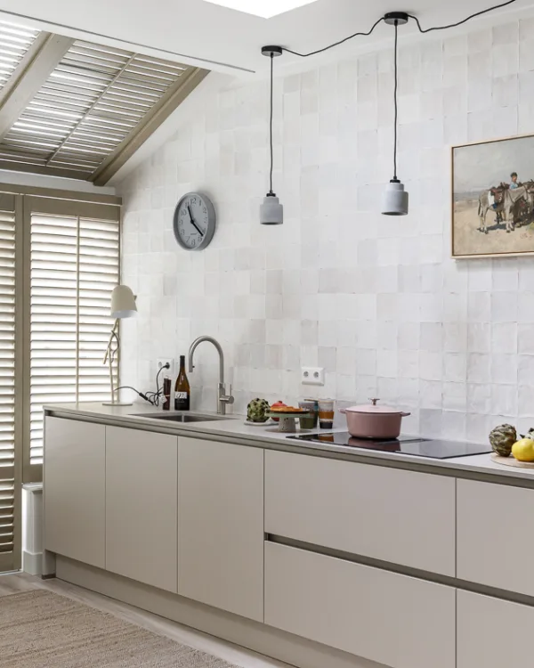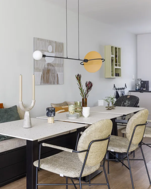 Als we Seren zouden vragen naar haar lievelingskleur, denk ik dat we met zekerheid kunnen zeggen dat dit wit is! De witte gietvloer maakt natuurlijk al een statement, dat bovendien gecomplementeerd wordt door de vele witte meubels en witte accessoires. Naast wit houdt Seren ook van organische vormen en natuurlijke materialen, zoals marmer.