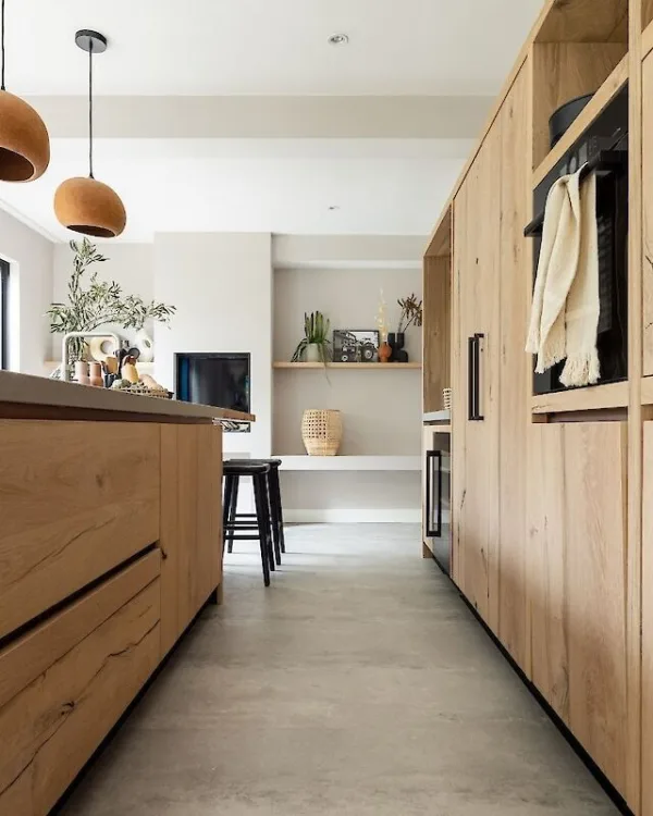 Waar onze bewoners het direct over eens waren is dat er meer eenheid, warmte en licht in het huis mag komen. Hoe bereik je dit meer dan met een nieuwe vloer? Het maakt een megaverschil wanneer je overal ook nog eens dezelfde vloer legt; van de woonkamer tot de keuken tot de voordeur. Dit geeft direct een rustige basis met een juiste balans.