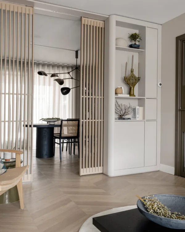 De beide bewoners willen graag lichte tinten, houtlook en veel opbergruimte. Wat denk je, is dat gelukt?